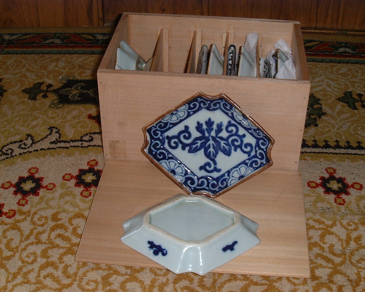 どうやら・・・・・印花、押花紋・・・・らしい・・・そして・・・あのまわりの黄土色はさびゆう・・・・・藍柿・・・門の可能性が・・・・・・。おっ!ポストにあった・・・・歴代柿・・門・・・・・・13代作・・・・・・鑑定にせまる・・・・と思いきや「あれ!九州文化センターでみた本・・・まちがえたかな?」・・・・・・例の伝説の絵が・・・・・・ない!確かに12代作のところでみたはずだが・・・・・・・どう見ても・・・・例の伝説の絵・・・・13代の絵とは・・・・・・同一人物とは思え・・・・・ん〜ん・・・Cの14の検査しかないか・・・・・